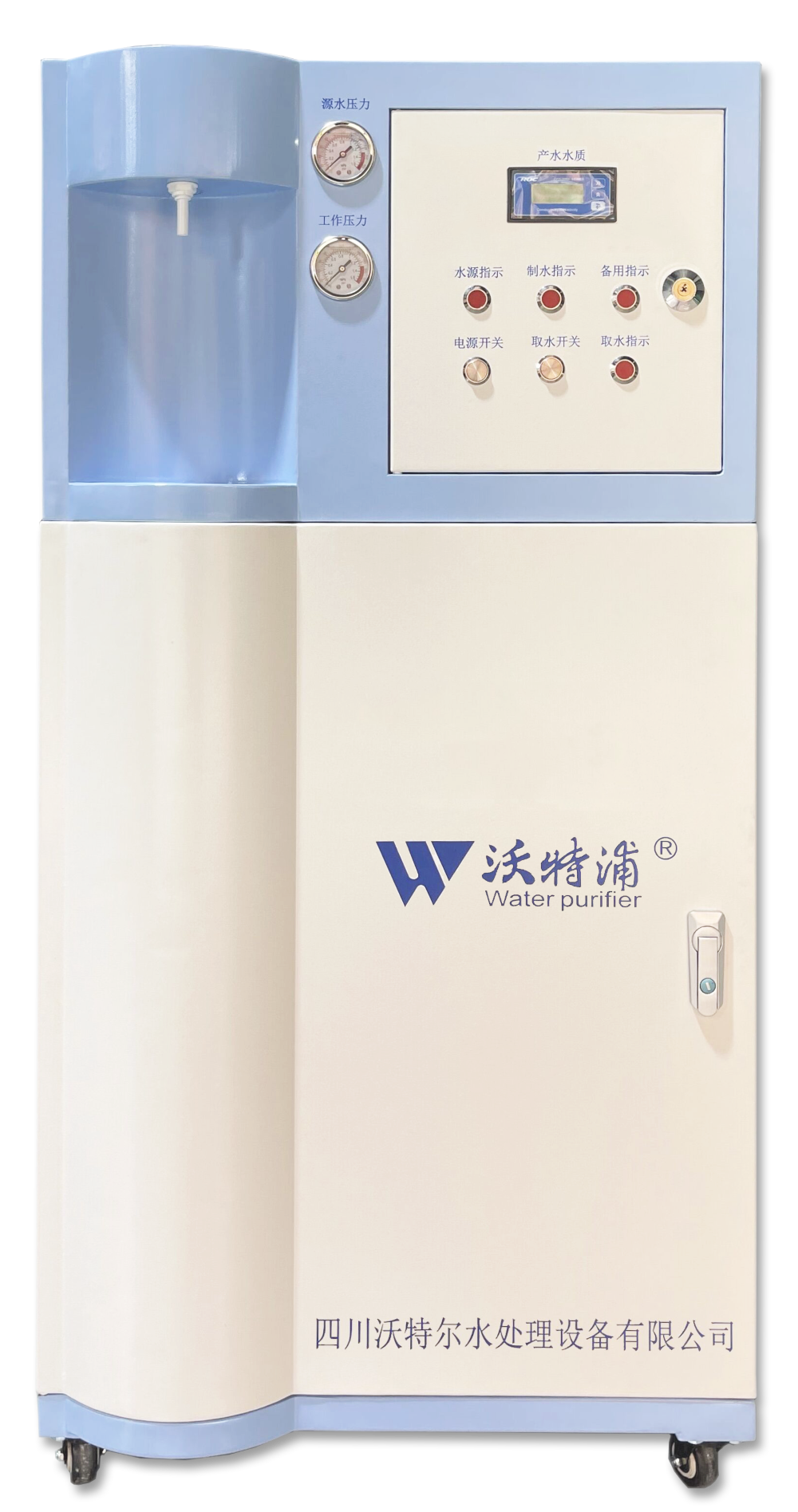 5.配備原水壓力、工作壓力、產水電導/電阻等工作儀表,可隨時監測(cè)原水(shuǐ)及反滲(shèn)透膜的運行壓力。能夠實時在線的顯示壓力、水質等當前工作狀態等信息。